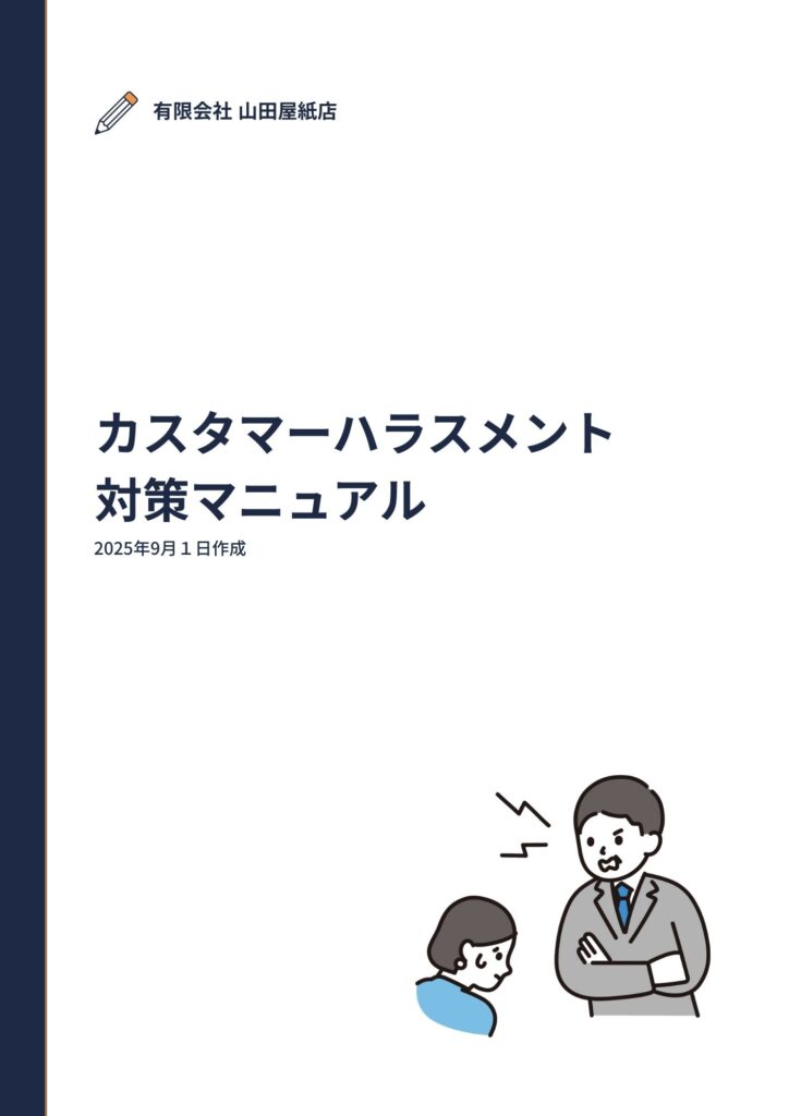 有限会社山田屋紙店「カスタマーハラスメントに対する基本方針」に加え、カスタマーハラスメント防止マニュアルを作成しました。下記よりダウンロードできます。